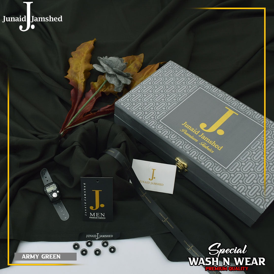 Junaid jamshed Winter Luxary wash n waer Gift packing (ARMY GREEN)12