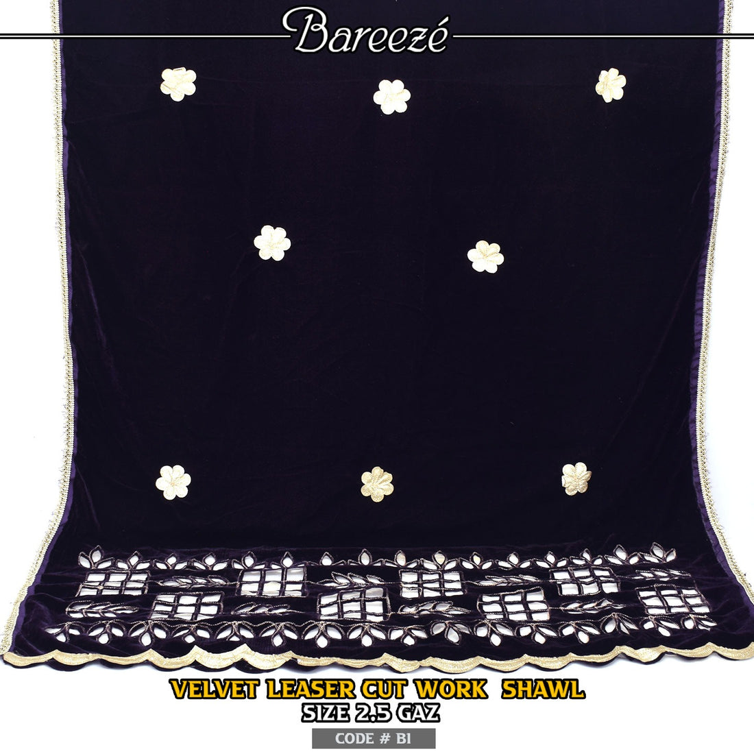 Velvet Ladies ShawlsBareeze New Volume Fine Quality leaser work Velvet Soft...